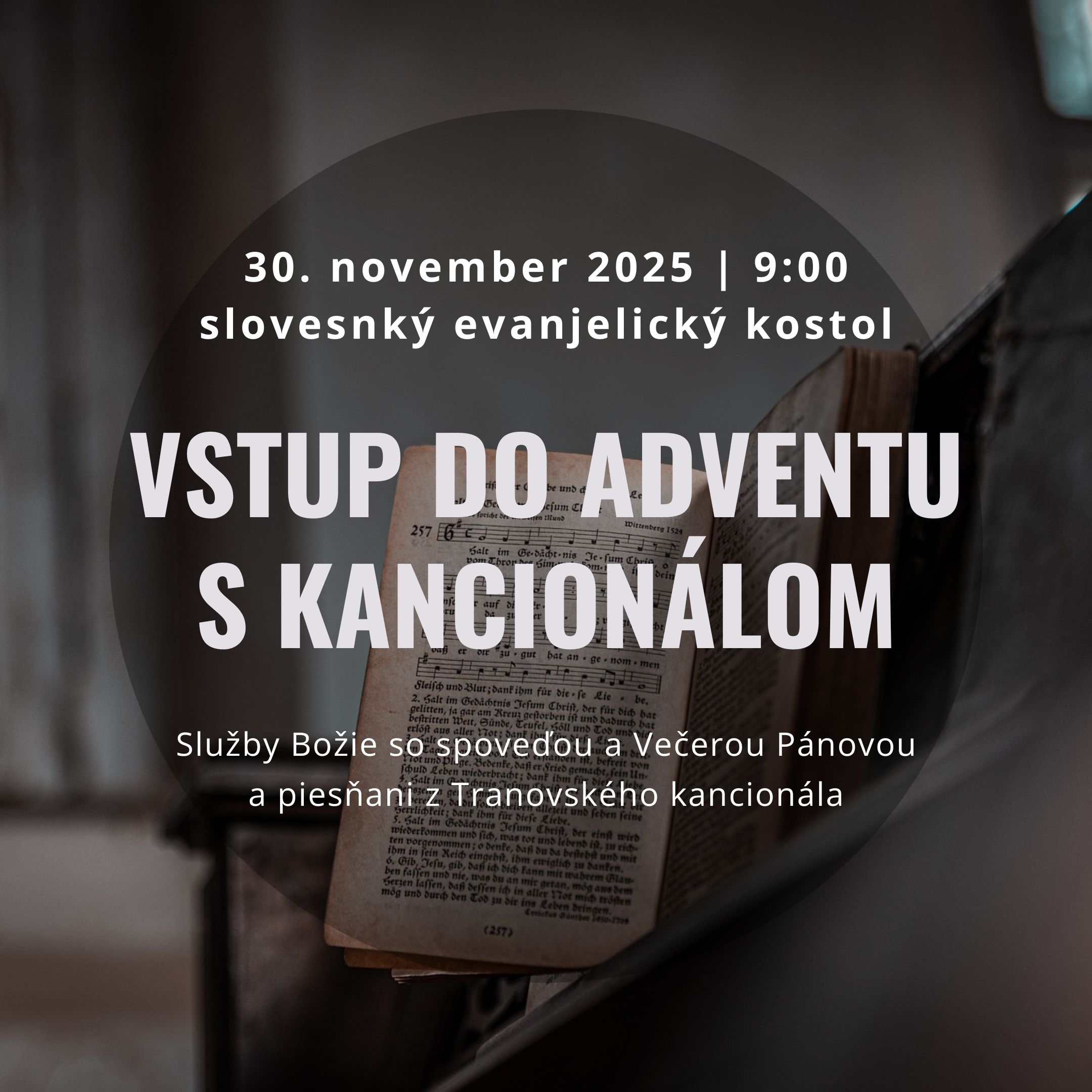 V nedeľu 30. novembra 2025 - 1. adventná nedeľa - pozývame o 9:00 do slovenského evanjelického kostola v Modre na služby Božie so spoveďou a Večerou Pánovou a piesňami z Tranovského kancionála