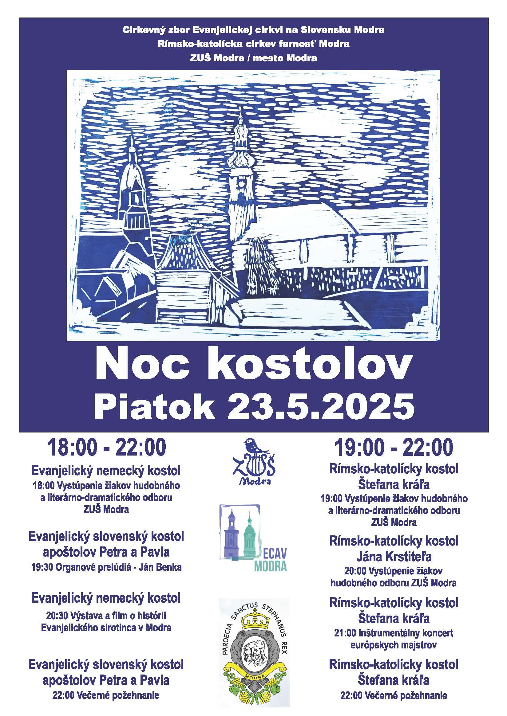 V piatok 23. mája 2025 večer (18:00-22:00) pozývame do našich modranských kostolov