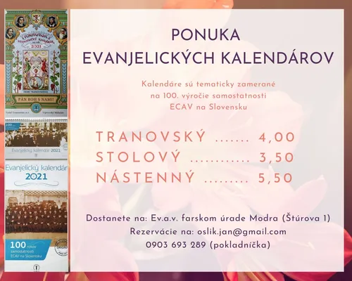 K dispozícii sú evanjelické kalendáre na rok 2021: TRANOVSKÝ - STOLOVÝ - NÁSTENNÝ