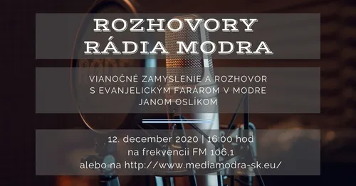 v sobotu 12.12.2020 o 16:00 hod môžete na Rádiu Modra počúvať zamyslenie a rozhovor s evanjelickým farárom z Modry Janom Oslíkom