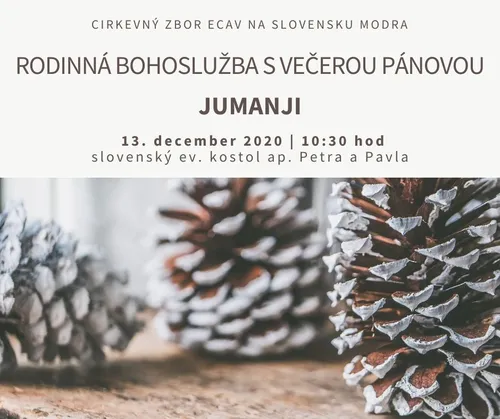 Pozývame na rodinnú bohoslužbu s Večerou Pánovou na tému JUMANJI v nedeľu 13. decembra 2020 o 10:30 hod v slovenskom ev. kostole ap. Petra a Pavla v Modre