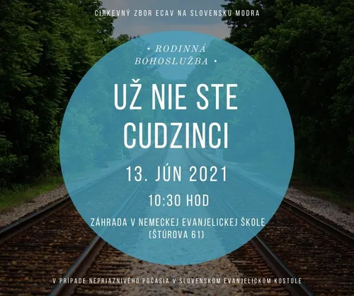 V nedeľu 13. júna 2021 pozývame o 10:30 hod na rodinnú bohoslužbu v záhrade v bývalej nemeckej evanjelickej škole - Štúrova 61 (v prípade nepriaznivého počasia v slovenskom evanjelickom kostole)
