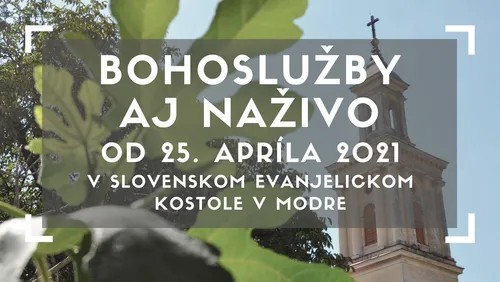 Od 25. apríla 2021 opäť sprístupňujeme kostol k bohoslužbám. V nedeľu (25.04.2021) budú v slovenskom evanjelickom kostole v Modre o 9:00 hod služby Božie a o 10:30 hod rodinná bohoslužba.