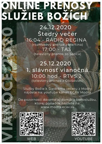 25.12.2020 - 1. slávnosť vianočná: 9:00 hod: slovenský ev. kostol Modra