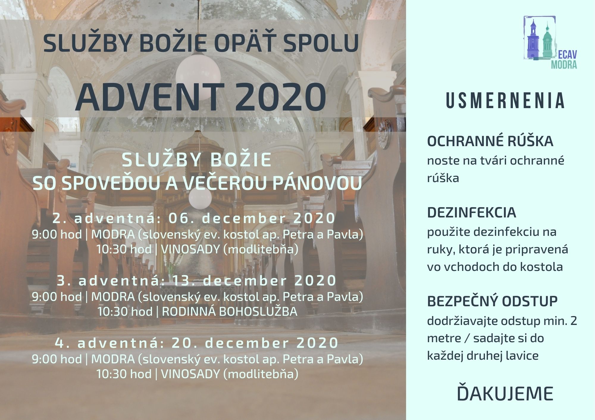služby Božie počas Adventu 2020