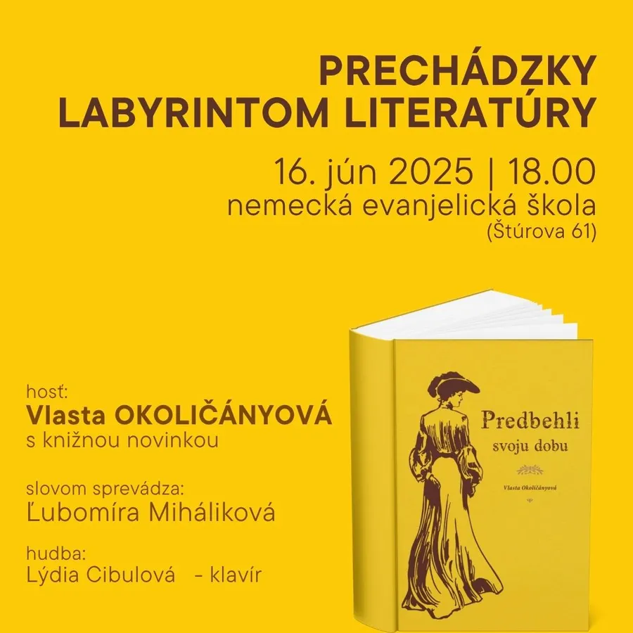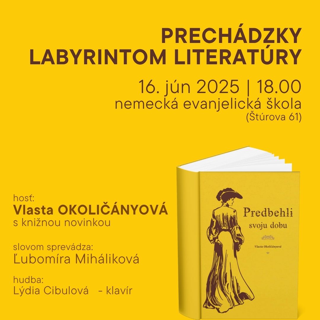 na Prechádzky labyrintom literatúry s hosťom Vlastou OKOLIČÁNYOVOU, ktorá predstaví svoju knižnú novinku "Predbehli svoju dobu"
