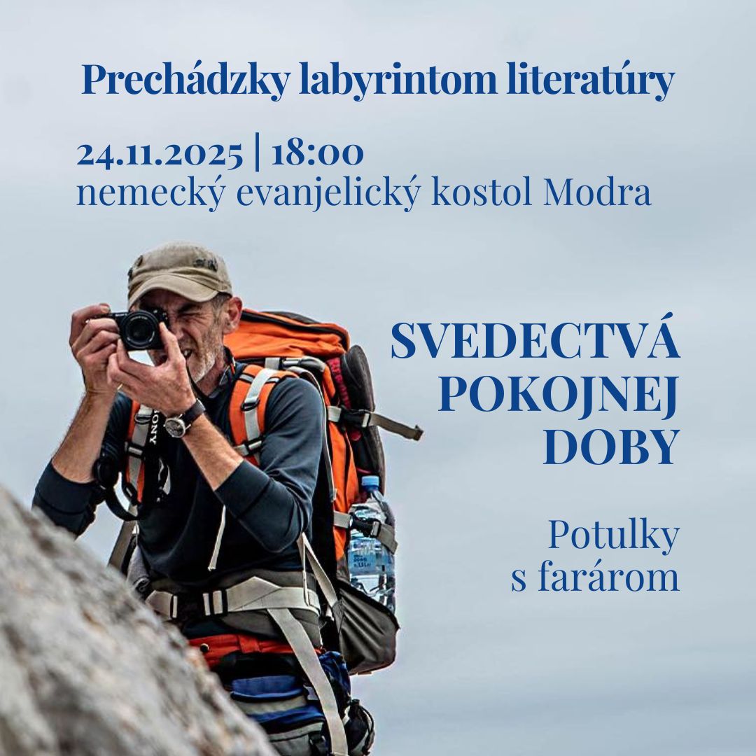 V pondelok 24. novembra 2025 pozývame o 18:00 do nemeckého evanjelického kostola v Modre na PRECHÁDZKY LABYRINTOM LITERATÚRY,