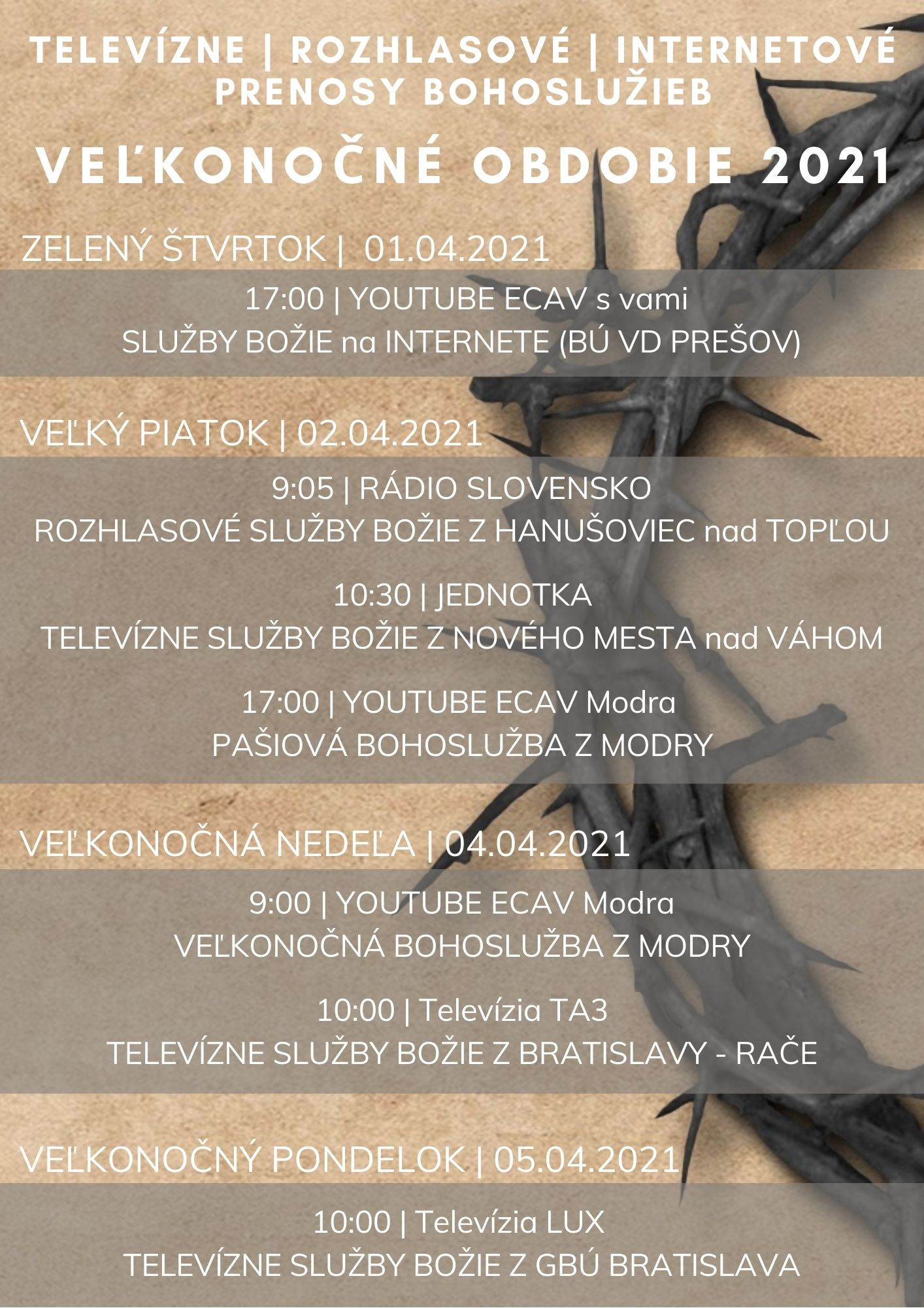 Prinášame prehľad televíznych, rozhlasových a internetových bohoslužieb počas Veľkej noci 2021